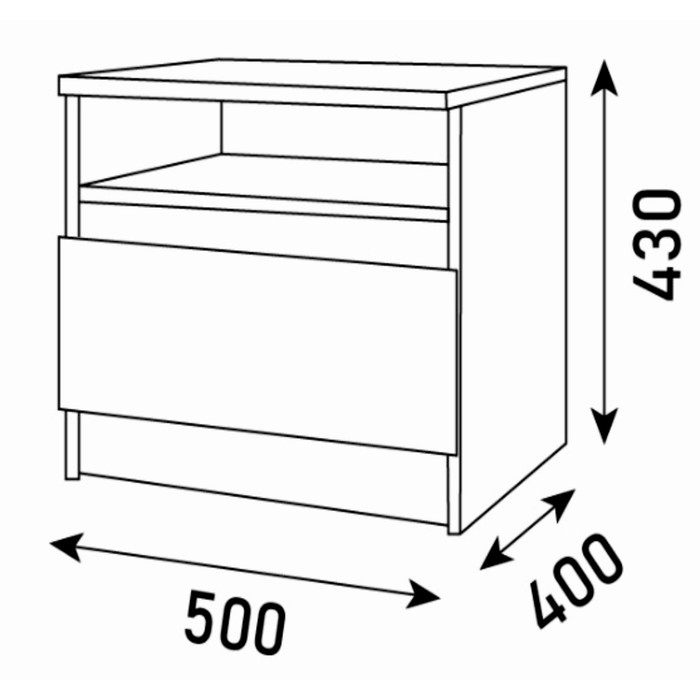 Тумба прикроватная Парус, 500х400х430, Белый/ Вотан - это стильное решение для современного интерьера. В выдвижном ящике на шариковых направляющих поместятся все необходимые вещи, а на открытой полке телефон, очки, книги и другие приятные мелочи.