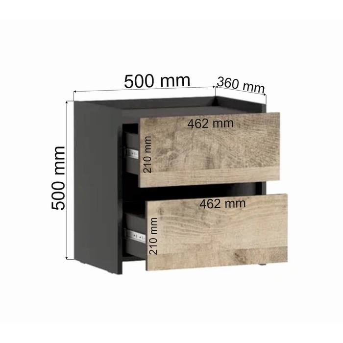 Тумба прикроватная с 2мя ящиками Денвер, 500х360х500, Графит/Дуб гранж