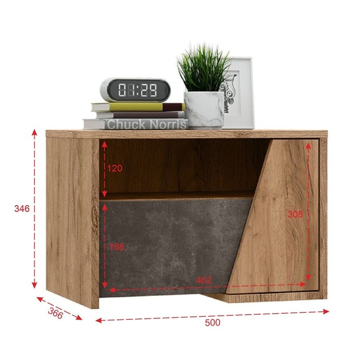 Тумба прикроватная Соренто, 500х366х346, Дуб крафт/Бетон темный