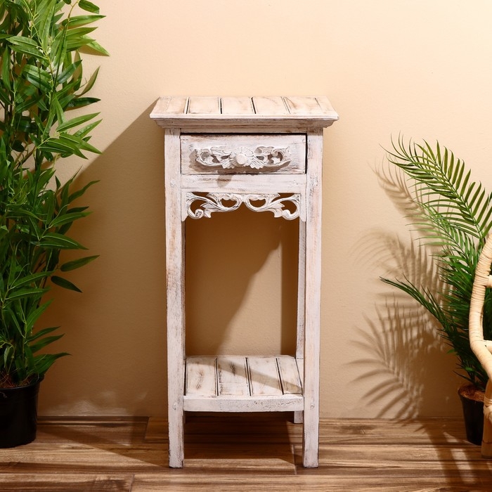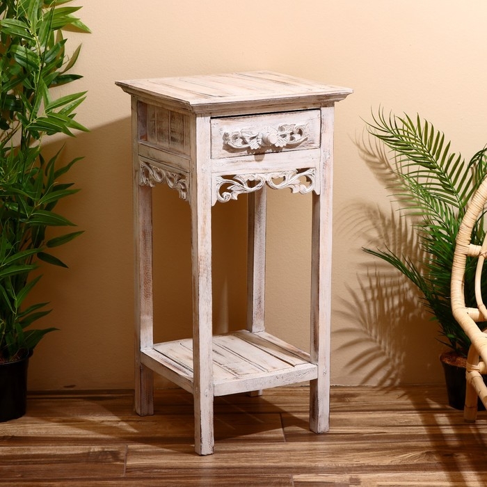 Тумба "Старый Бали" 40х40х80 см, дерево албезия, белый