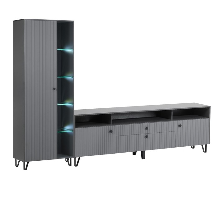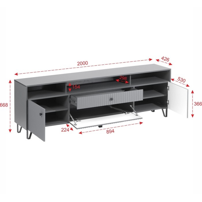 Тумба ТВ Оливия, 2000х426х668, цвет графит / графит софт, МДФ