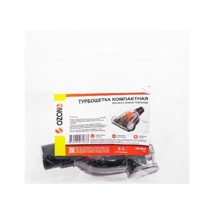 Турбощетка компактная для пылесоса UN-8932 Ozone, черная, шириной 115 мм, под трубку 32 мм