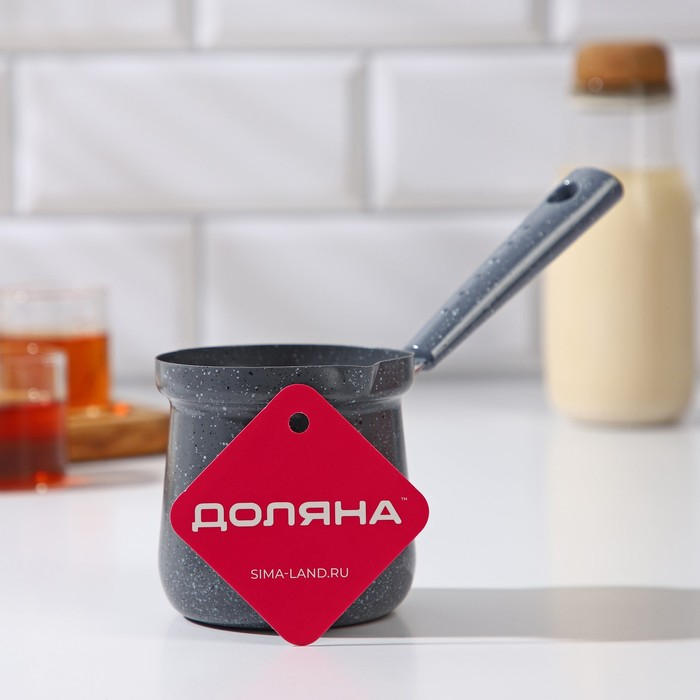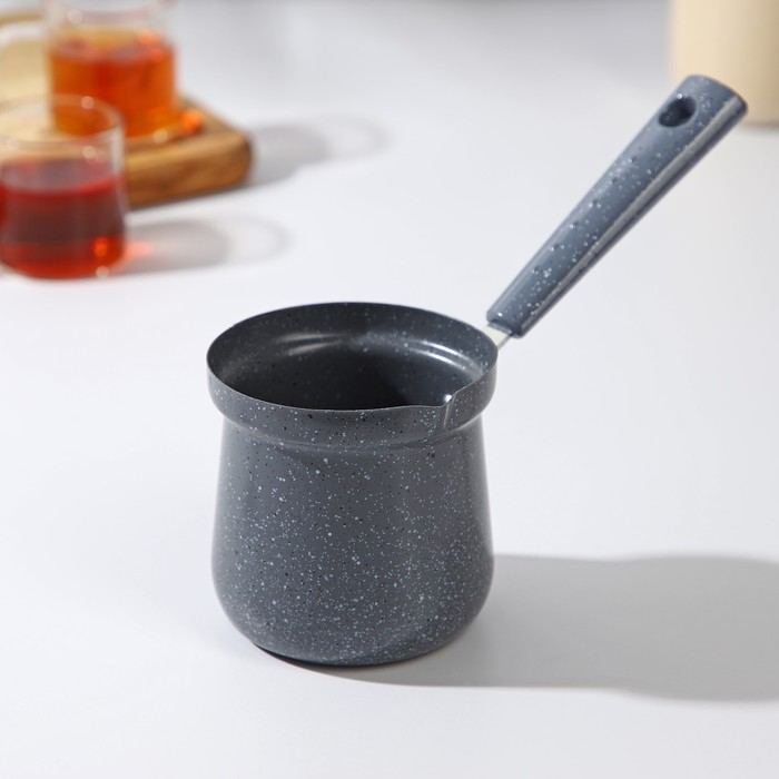 Турка Доляна «Мрамор грэй», 350 мл, d=8 см, 19,5×8,5×12 см, пластиковая ручка, антипригарное покрытие, индукция, цвет серый