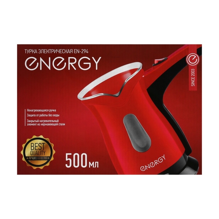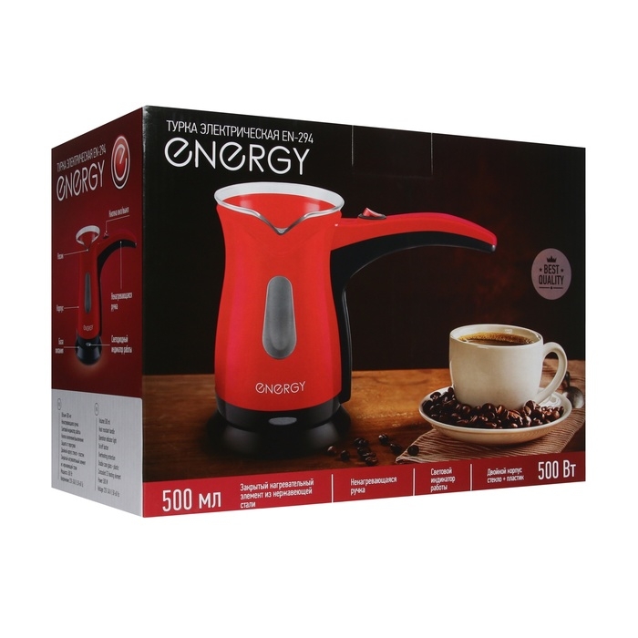Турка электрическая Energy EN-294, 500 Вт, 0.5 л, красная