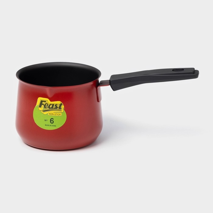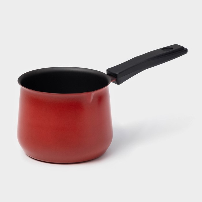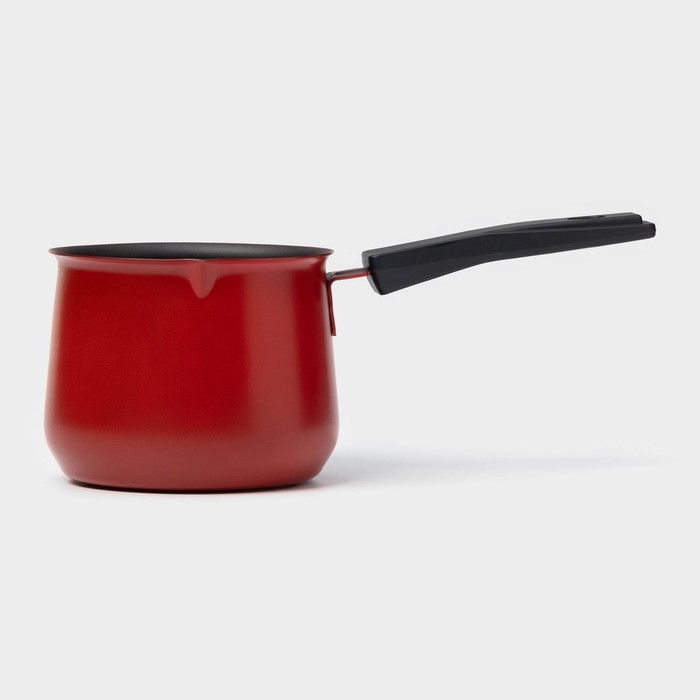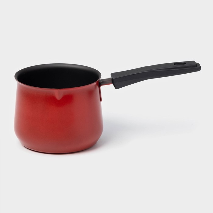 Турка Доляна «Мрамор рэд», 400 мл, d=8 см, пластиковая ручка, антипригарное покрытие, индукция, цвет красный