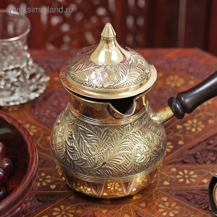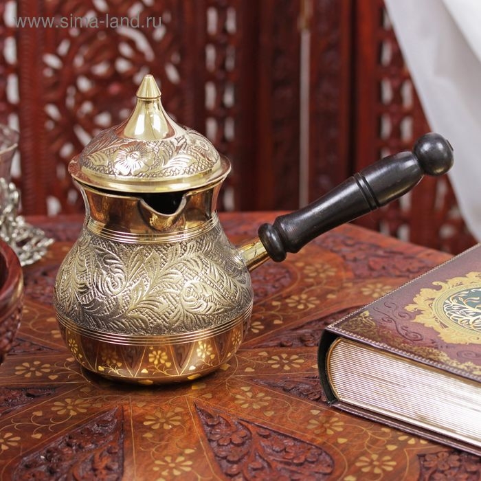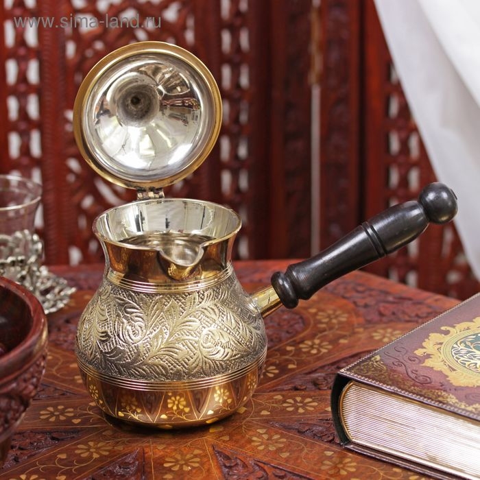 Турка латунь "Синичка" деревянная рукоять 500 мл (с крышкой)