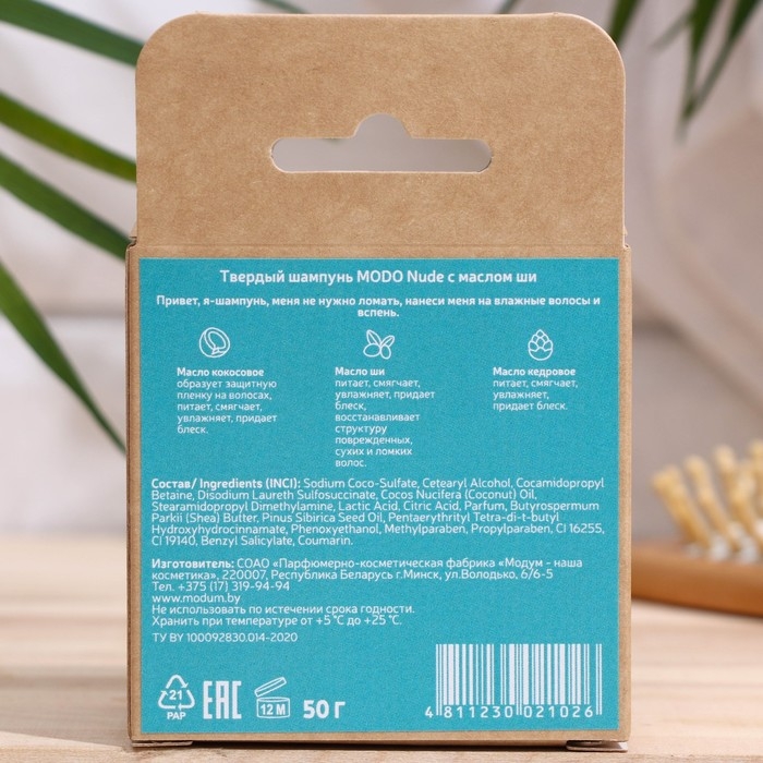 Твердый шампунь Modo NUde с маслом ши, 50 г