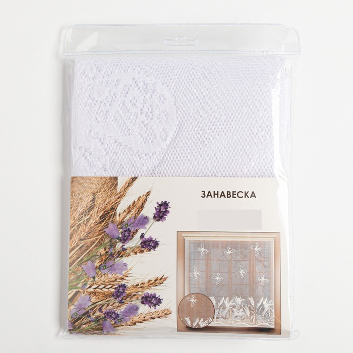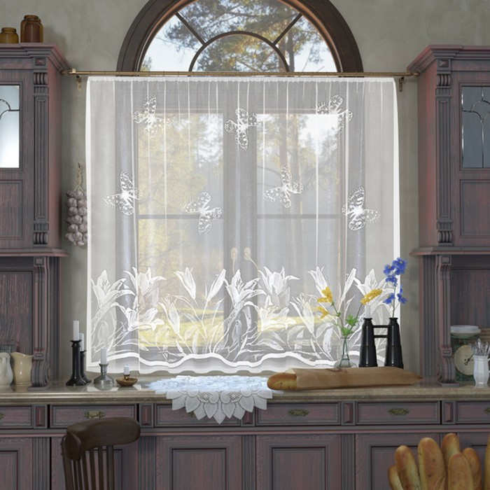 Тюль на кухню без шторной ленты 170х170 см, цвет белый, 100% полиэстер