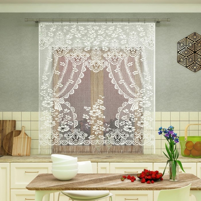 Тюль на кухню без шторной ленты,165х170 см, цвет белый, 100% полиэстер