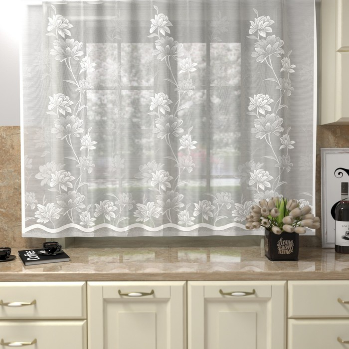 Тюль на кухню со шторной лентой, 160х260 см, цвет белый, 100% полиэстер