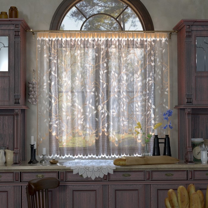 Тюль на кухню со шторной лентой, 250х160 см цвет бежевый