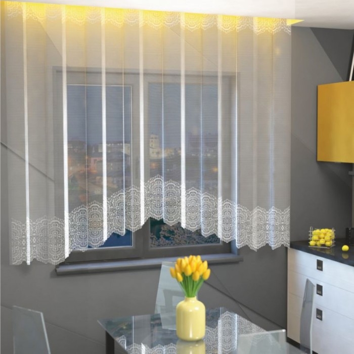Тюль на кухню со шторной лентой, 285х160 см, цвет белый, 100% полиэстер