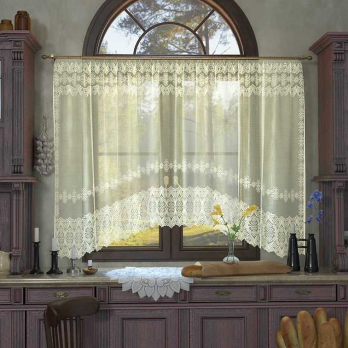 Тюль на кухню со шторной лентой, 285х165 см, цв. Ваниль, 100% полиэстер