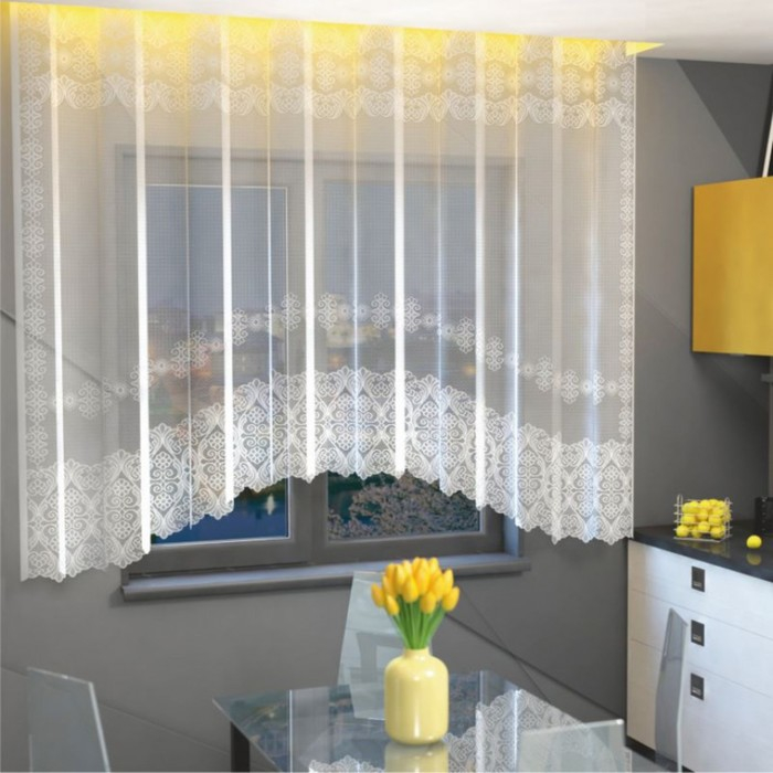 Тюль на кухню со шторной лентой, 285х165 см, цвет белый, 100% полиэстер