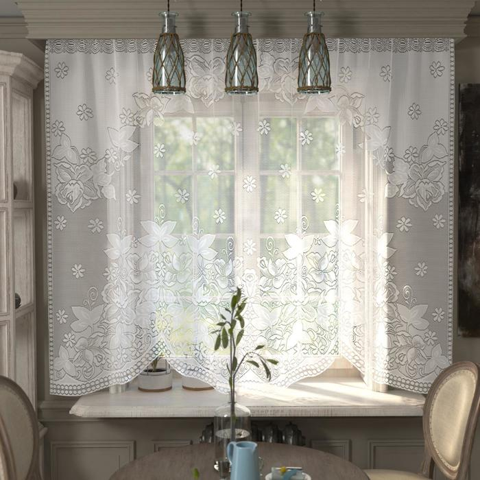 Тюль на кухню со шторной лентой, 285х167 см, цвет белый, 100% полиэстер
