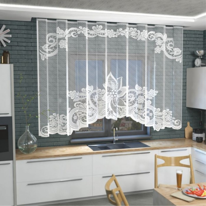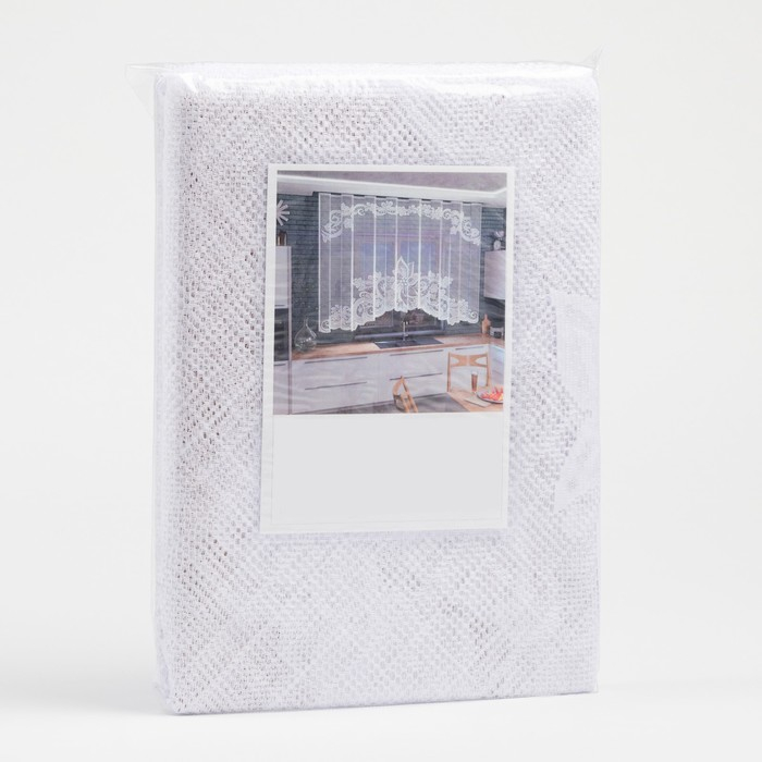 Тюль на кухню со шторной лентой, 345х165 см, цвет белый, 100% полиэстер