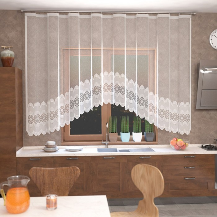 Тюль на кухню со шторной лентой, 420х165 см, цвет белый, 100% полиэстер