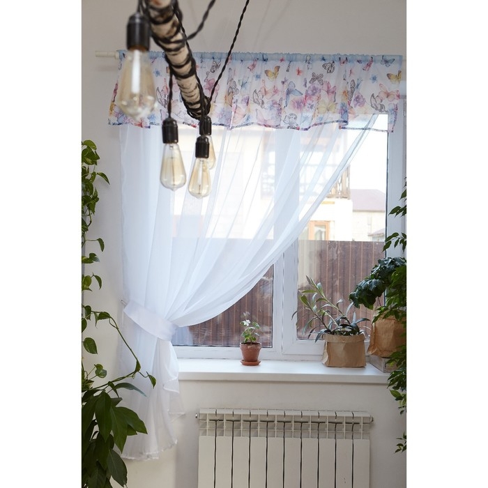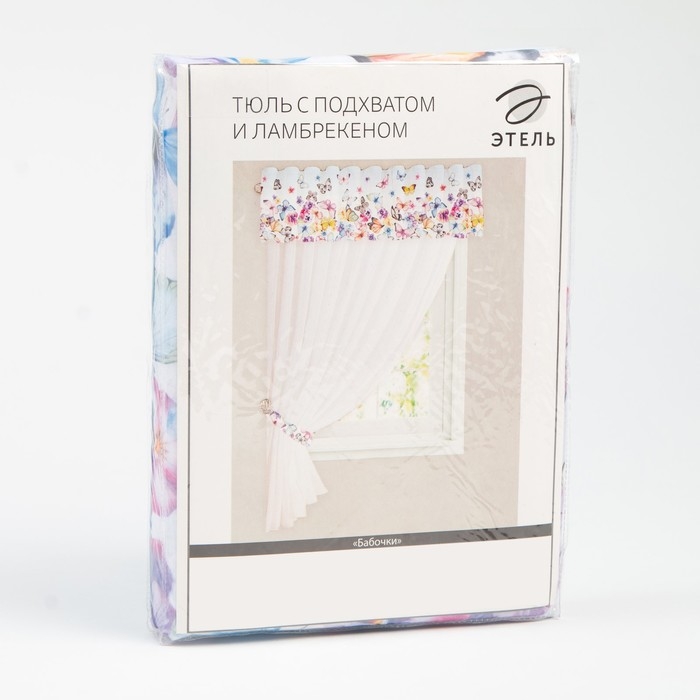 Тюль с подхватом и ламбрекеном "Бабочки" 250х200см, 100% п/э, вуаль