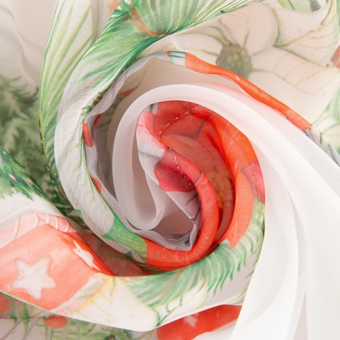 Тюль с подхватом и ламбрекеном "Christmas red flowers" 250х200см, 100% п/э, вуаль