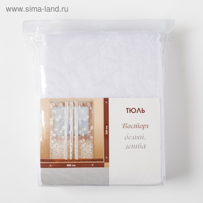 Тюль со шторной лентой 260х300 см, белый, пэ 100%