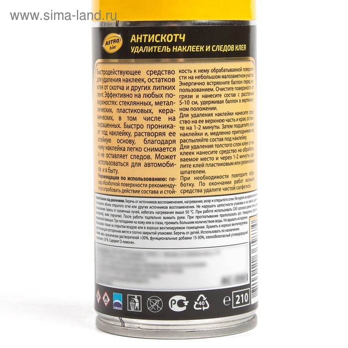 Удалитель наклеек и следов клея Astrohim Антискотч, 210 мл, аэрозоль, АС - 3561