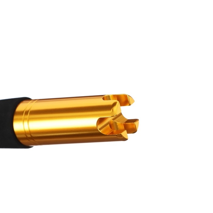 Рыболовный шнур на удилище проходит внутри мощного толстостенного бланка через втулку и тюльпан, изготовленных из специальной нержавеющей стали и покрытых нитридом титана. Для пропуска шнура внутри секций используется специальный шнур-игла, который входит в комплект удилища.