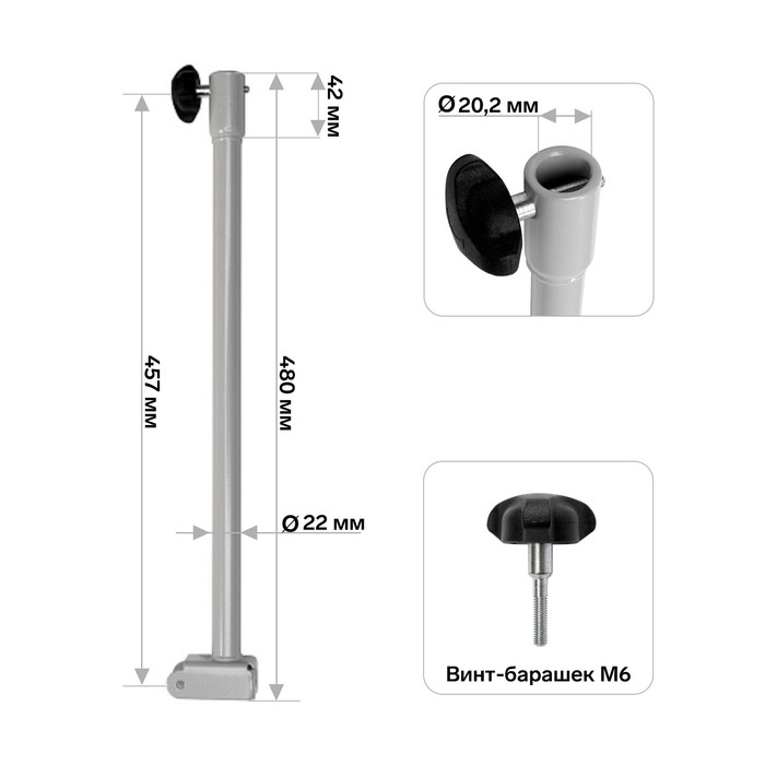 Для присоединения удлинителя к валу мотобура необходимо использовать винт-барашек М6. Допускается присоединение мотобуров к удлинителю с диаметром выходного вала 20 мм.