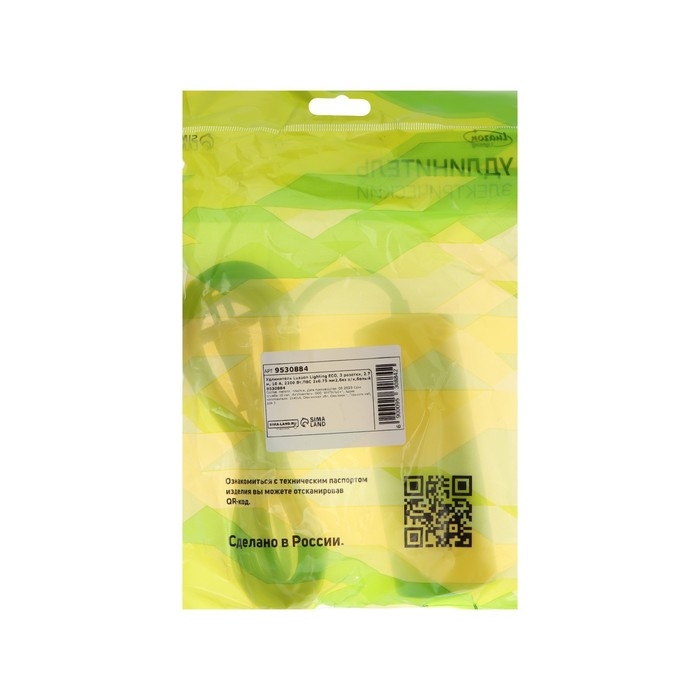 Удлинитель Luazon Lighting ECO, 3 розетки, 2.7 м, 10 А, 2200 Вт,ПВС 2х0.75 мм2,без з/к,белый