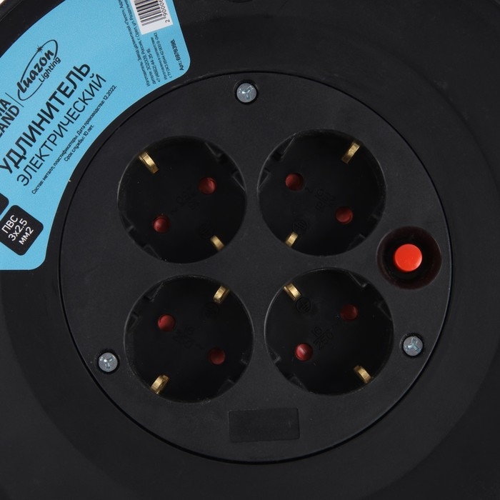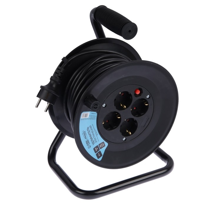 Удлинитель на катушке 4 розетки, 25 м, 16 А, ПВС 3х2.5 мм2, без з/к,IP20