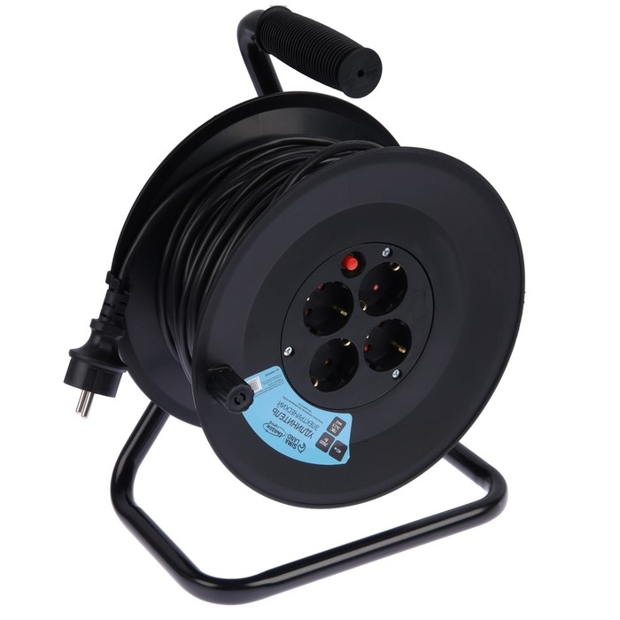Удлинитель на катушке 4 розетки, 40 м, 16 А, ПВС 3х2.5 мм2, с з/к,IP20