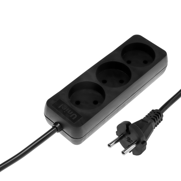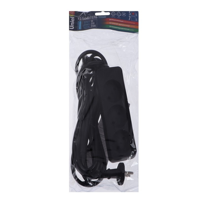 Удлинитель Uniel Standart, 3 розетки, 5 м, 10 А, 2500 Вт, без з/к, черный