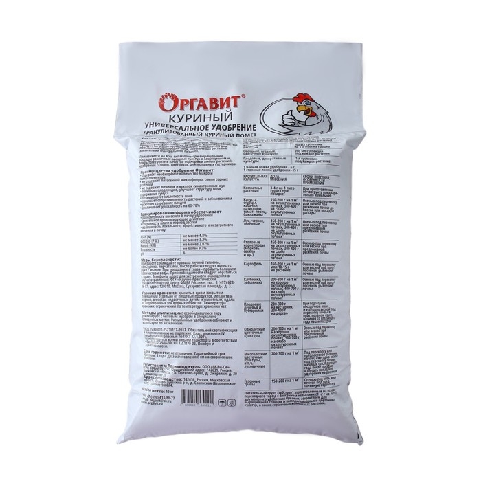 Рекомендации по применению удобрения Оргавит Куриный:
