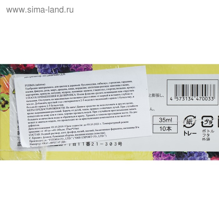 Удобрение японское FUJIMA для комнатных цветов и деревьев, желтый, 35 мл, 10 шт.