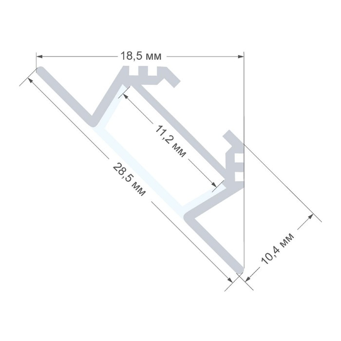 Алюминиевый профиль для светодиодной ленты 08-03 по своей конструкции является накладным угловым, а это значит, что такой вариант профиля идеально подходит для монтажа накладным способом в угол между двумя плоскими поверхностями, а его свечение направлено под углом 45°. Данная модель алюминиевого профиля имеет размер 28,5х10,4х2000мм, и внутри него можно разместить светодиодную ленту шириной до 10мм. В алюминиевый профиль уже установлен рассеиватель белого цвета, изготовленный из светорассеивающего поликарбоната. Такой рассеиватель пропускает 70 % светового потока и делает его более мягким и приятным для ваших глаз, поэтому наиболее часто используется для решения задач по организации декоративного и основного освещения. Также в комплекте с профилем идут заглушки в количестве 2-х шт. Благодаря дробеструйной обработке профиль имеет приятную матовую поверхность, а анодирование сохранит благородный серебристый цвет, защищая профиль от окисления.