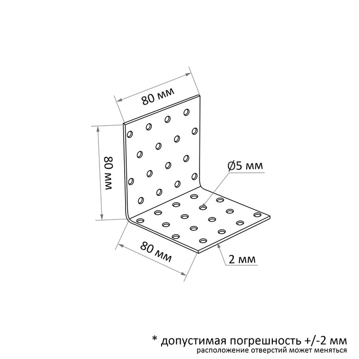 Уголок крепежный равносторонний ТУНДРА, 80х80х80х2 мм, в упаковке 10 шт.