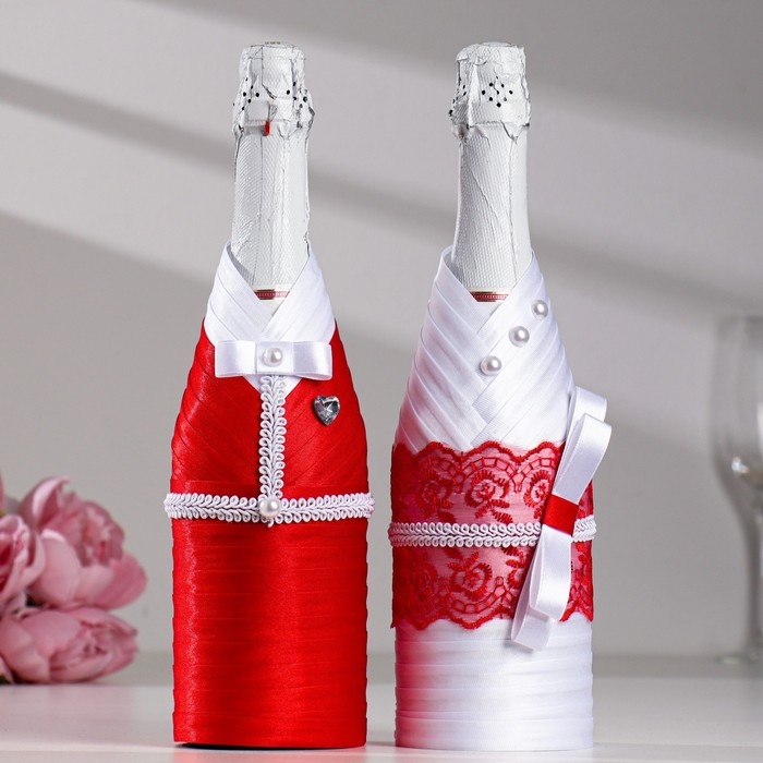 Украшение для шампанского "Кармен", красно-белое