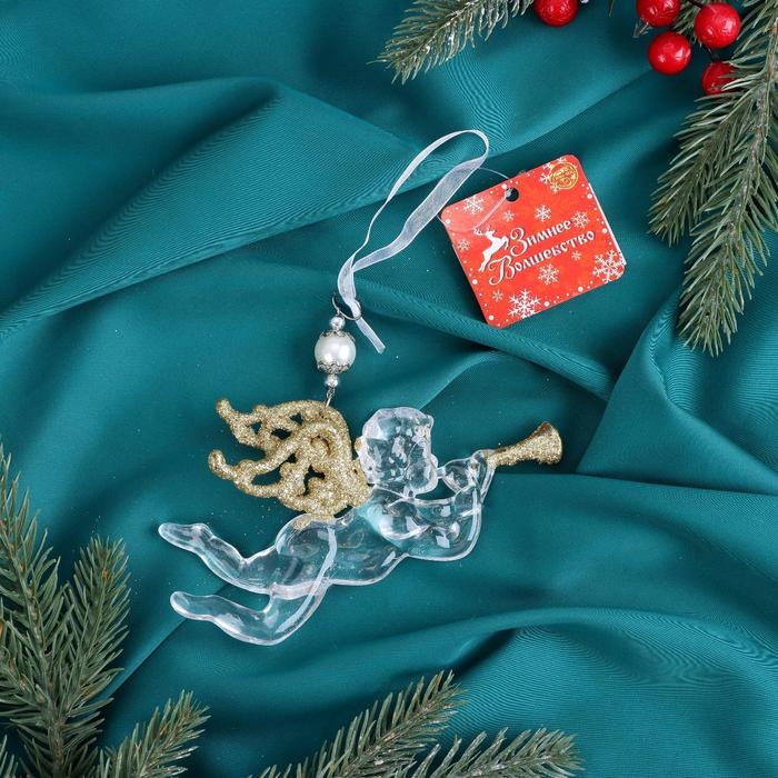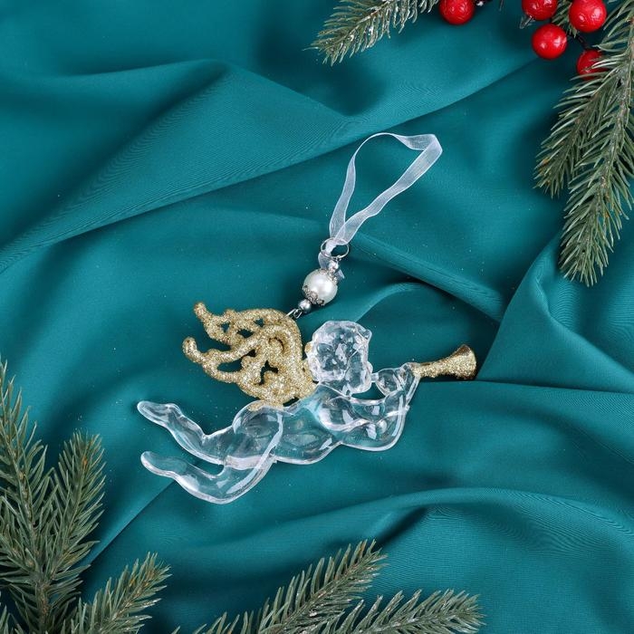 Украшение ёлочное "Ангел с трубой блеск" 14х8 см, прозрачно-золотой