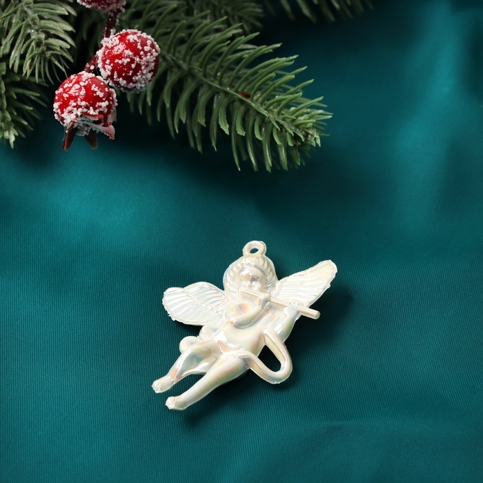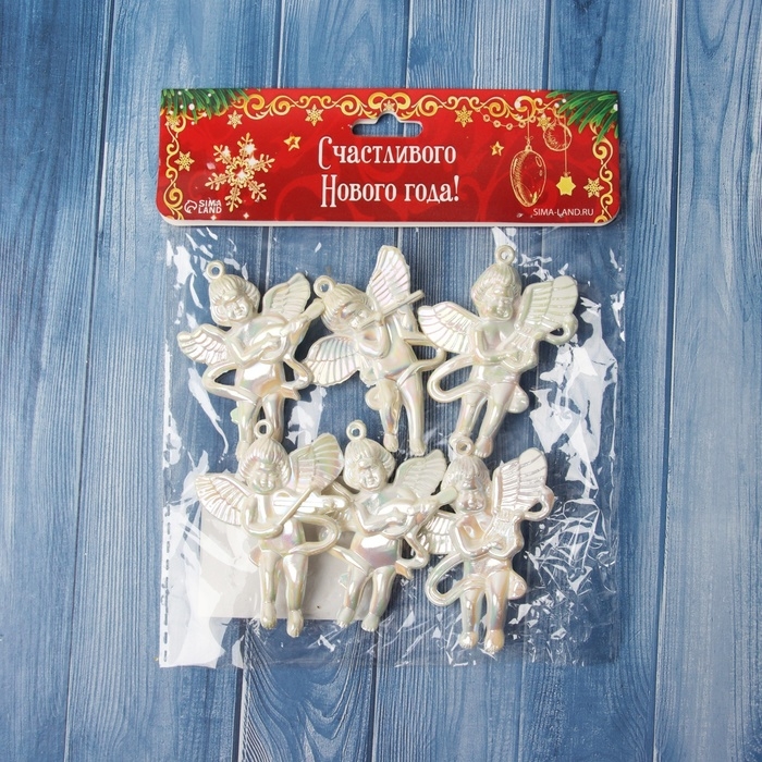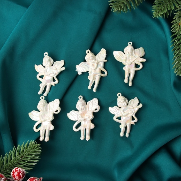 Украшение ёлочное "Ангелочки перелив" (набор 6 шт) 5,5х4 см, белый перламутр