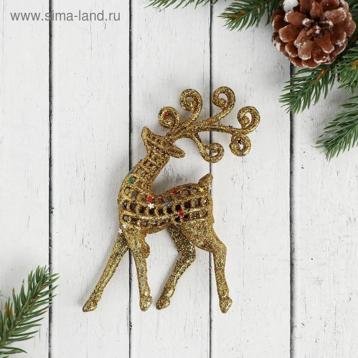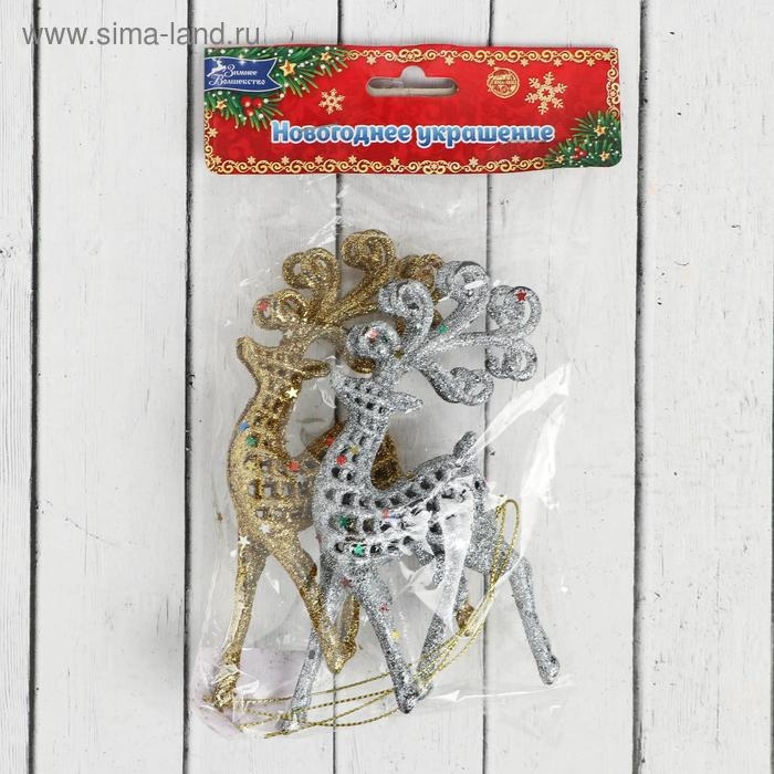 Украшение ёлочное "Ажурный олень в блёстках" (набор 2 шт) 5,5х12 см, серебро, золото
