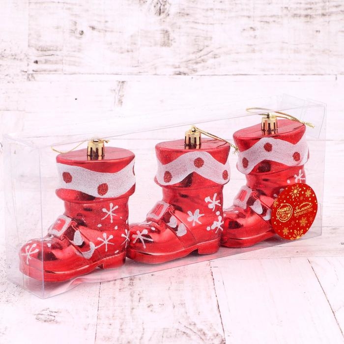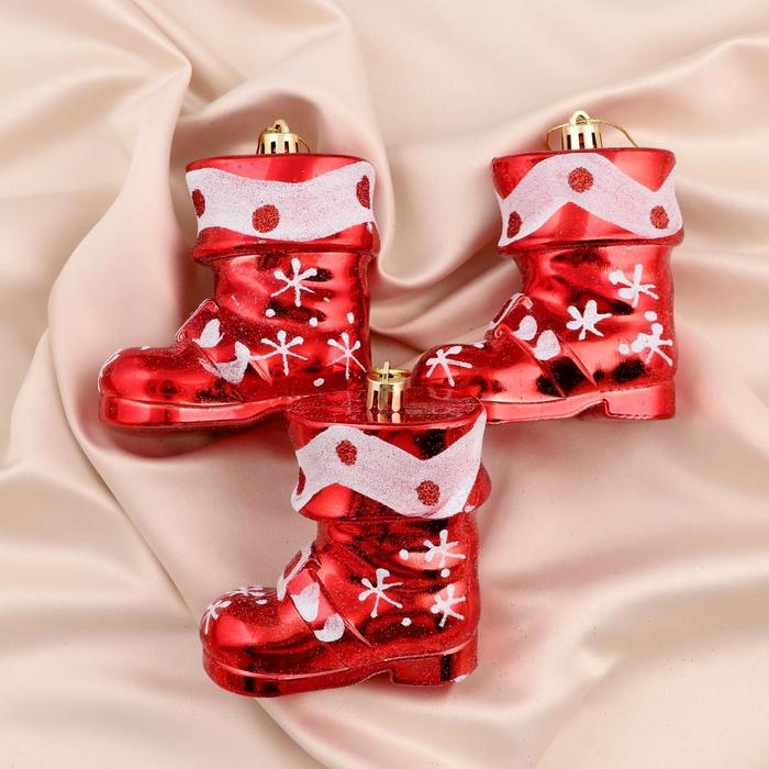 Украшение ёлочное "Ботинок" (набор 3 шт) 8х8 см, бело- красный