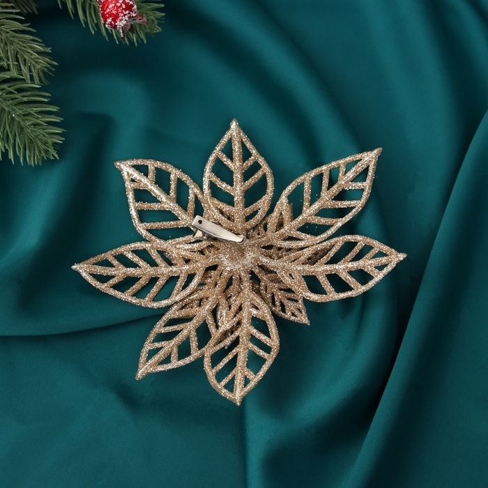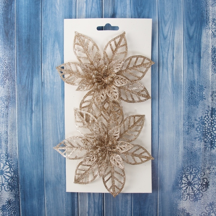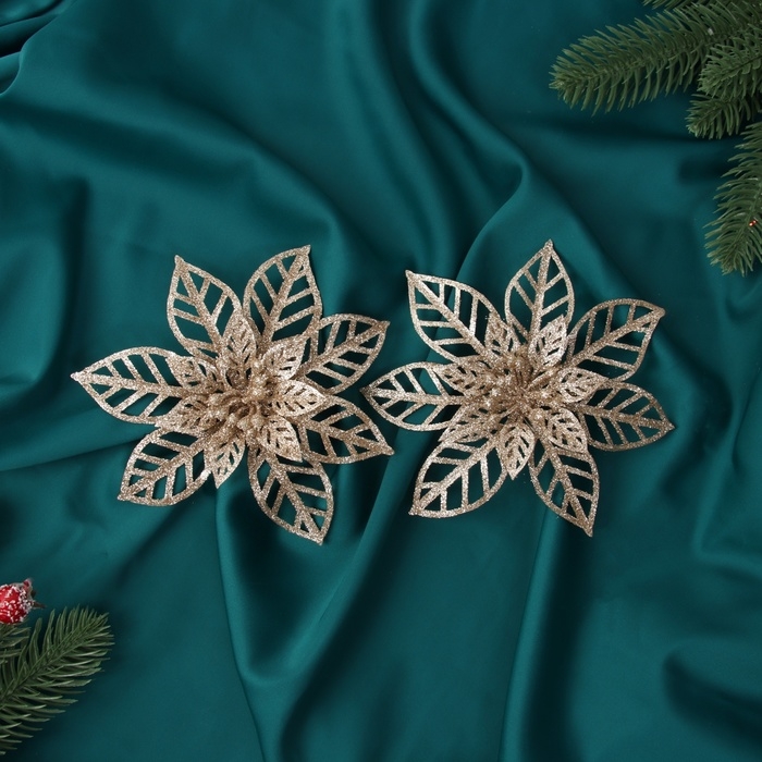 Украшение ёлочное "Цветы резные блеск" (набор 2 шт) на зажимах, 13х13 см, золото