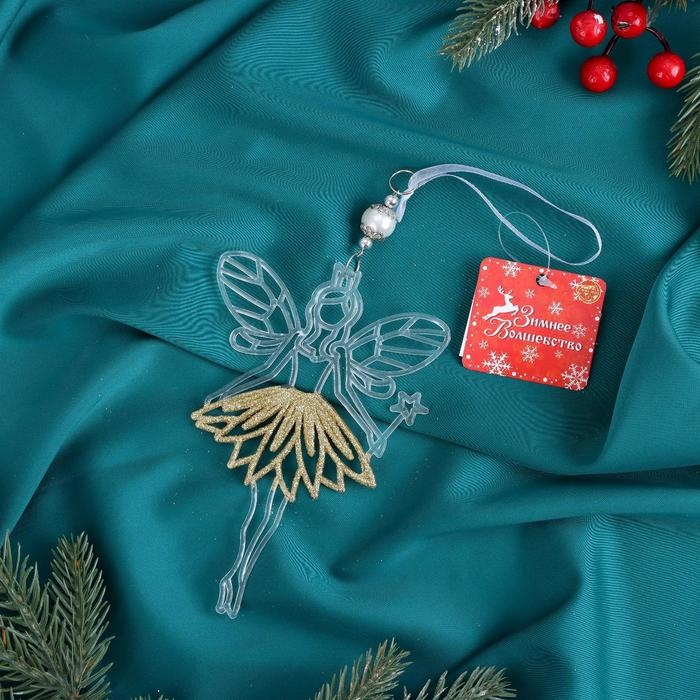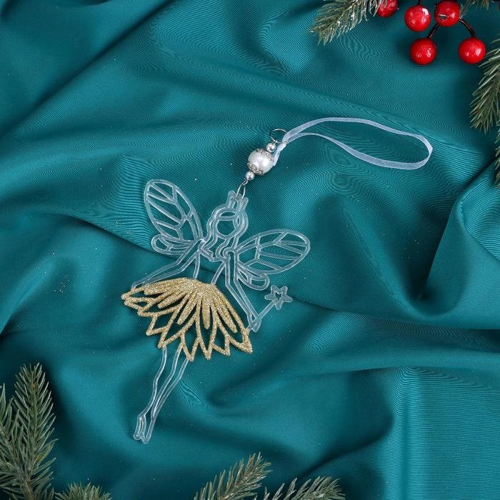 Украшение ёлочное "Дюймовочка юбка блеск" 9,5х14,5 см, прозрачно-золотой