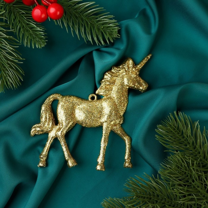 Украшение ёлочное "Единорог глиттер" 10х10 см, золото