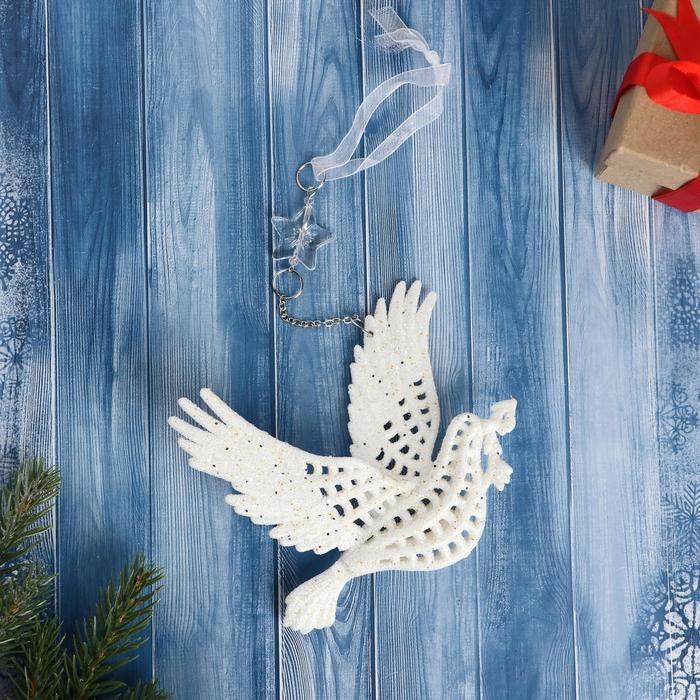 Украшение ёлочное "Голубь с веткой" 12,5х11,5 см, белый