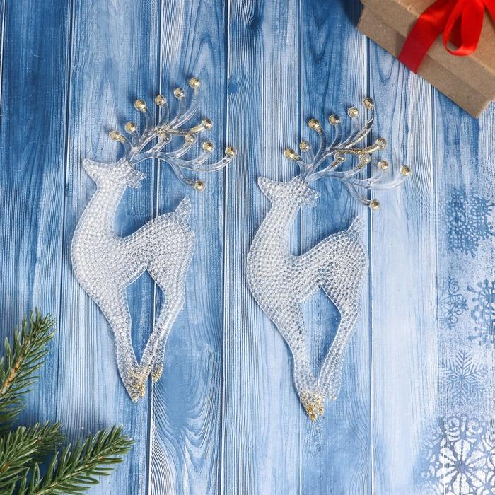 Украшение ёлочное "Грациозный олень" (набор 2 шт) 8х17,5 см, прозрачно-золотой