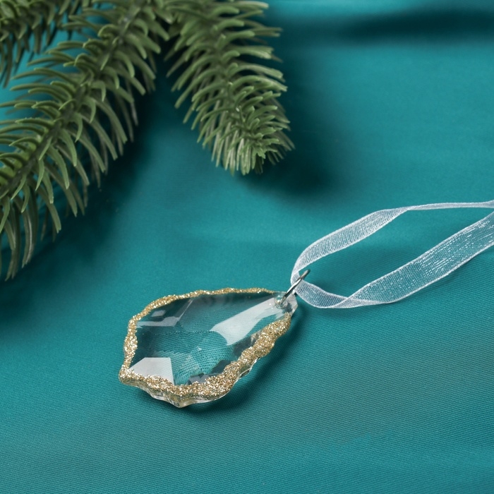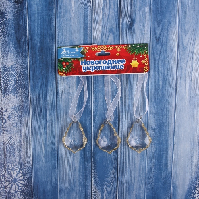 Украшение ёлочное "Капля" (набор 3 шт) 4,5х3 см, прозрачный с золотом