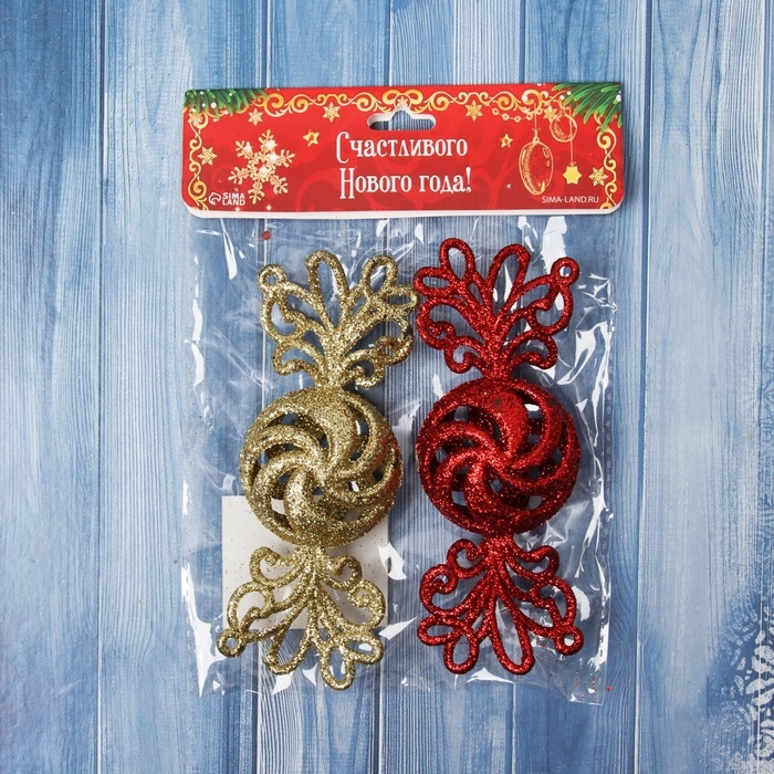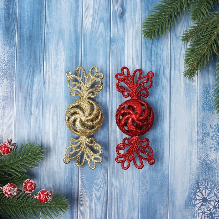 Украшение ёлочное "Конфетка блеск" (набор 2 шт) 12х4,5 см, красный золото