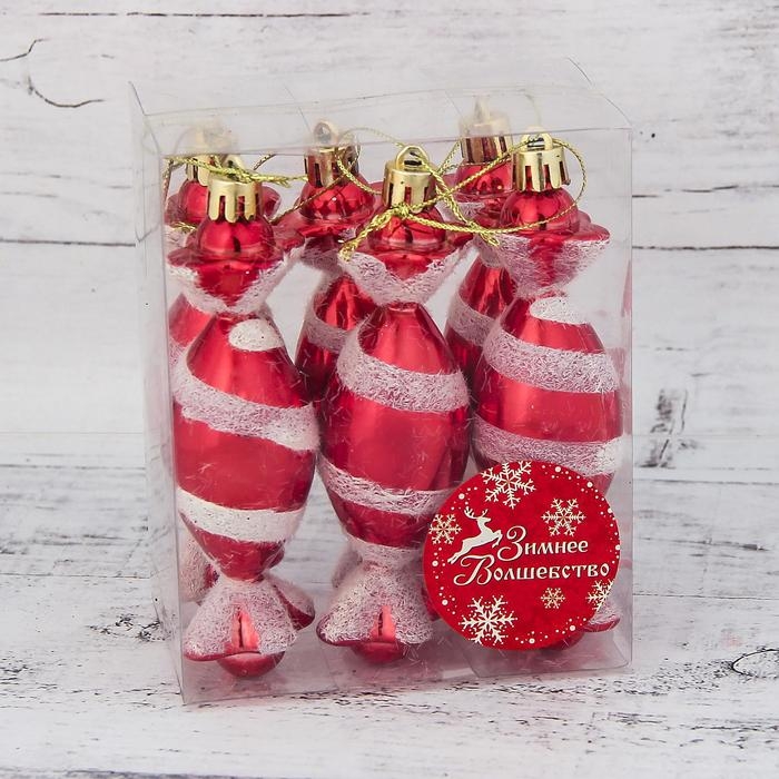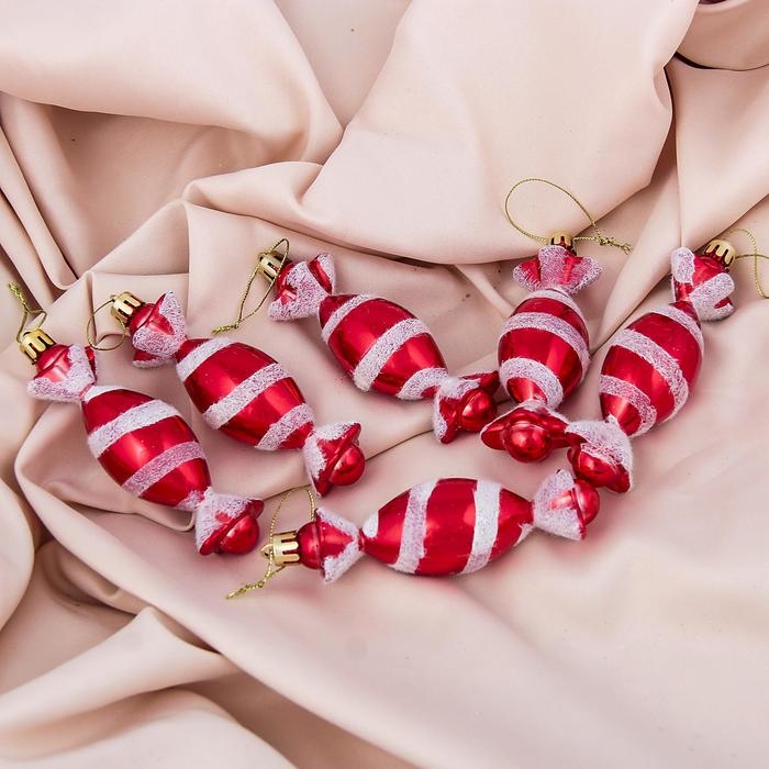 Украшение ёлочное "Конфетки полосатые" (набор 6 шт) 3,5х10,5 см, красно-белый