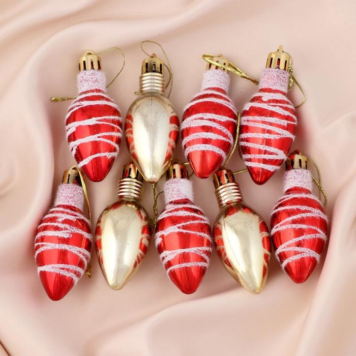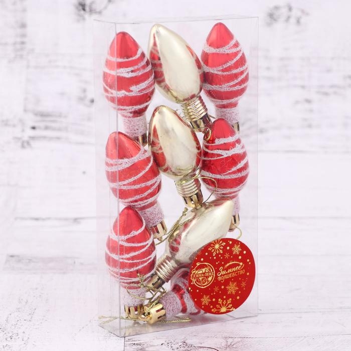 Украшение ёлочное "Лампочка - полосы" (набор 9 шт) 3х6 см, микс