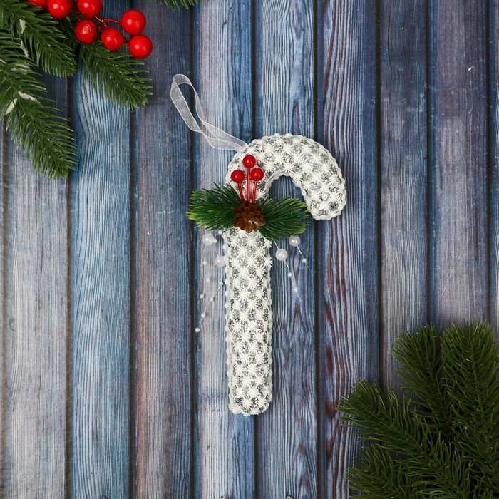 Украшение ёлочное "Леденец " блеск, 7х15 см, белый